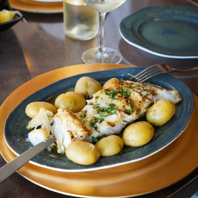 Peixe da costa, grelhado na brasa para realçar frescura e sabor. Uma experiência gastronómica distinta, sofisticada e inesquecível.